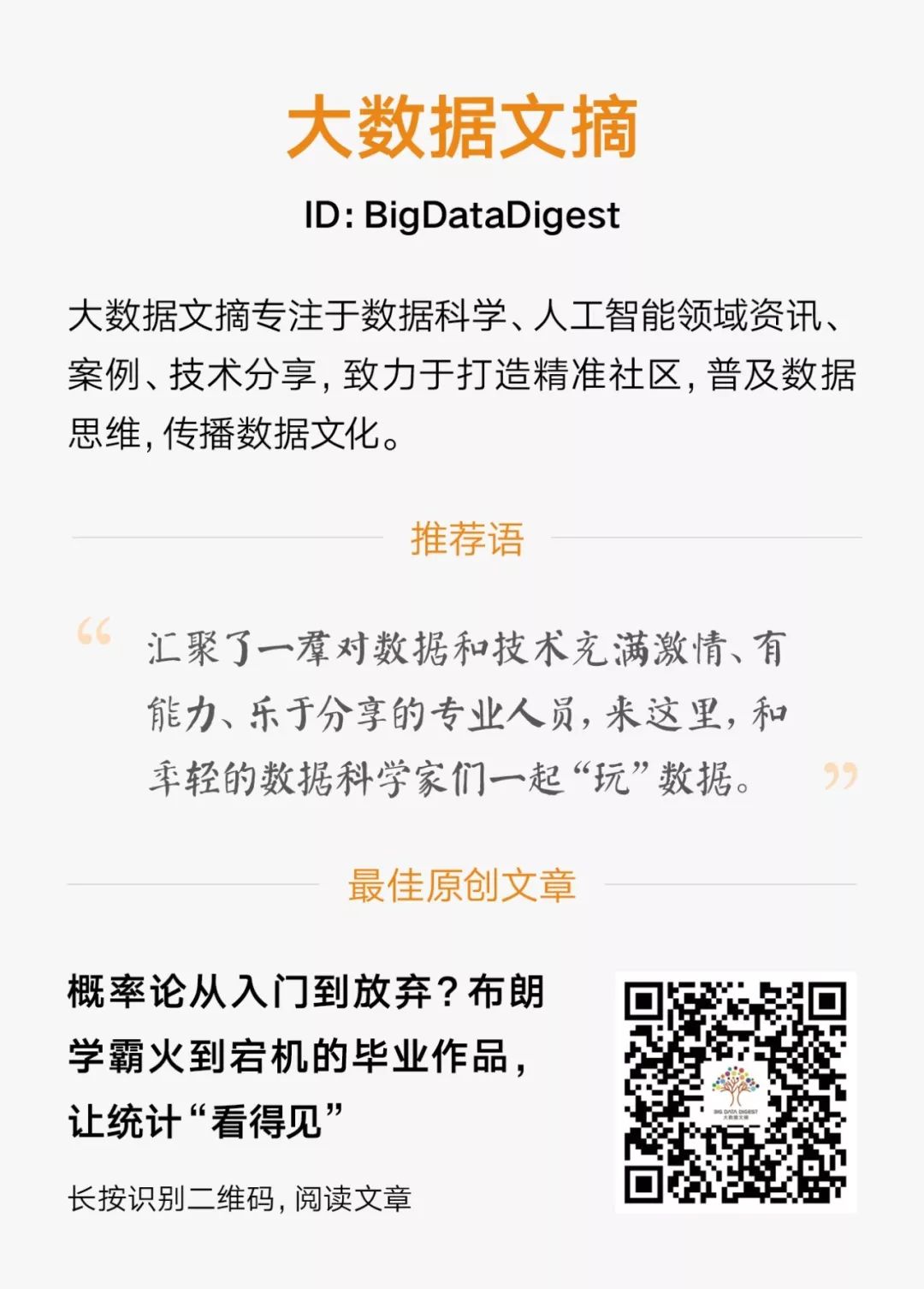 大数据文摘作为行业里的中间力量,不断的为读者提供更多优质内容而努力。这里汇聚了一群对数据和技术充满激情、有能力、乐于分享的专业人员,365天无休地为您送上最新最有料的资讯。