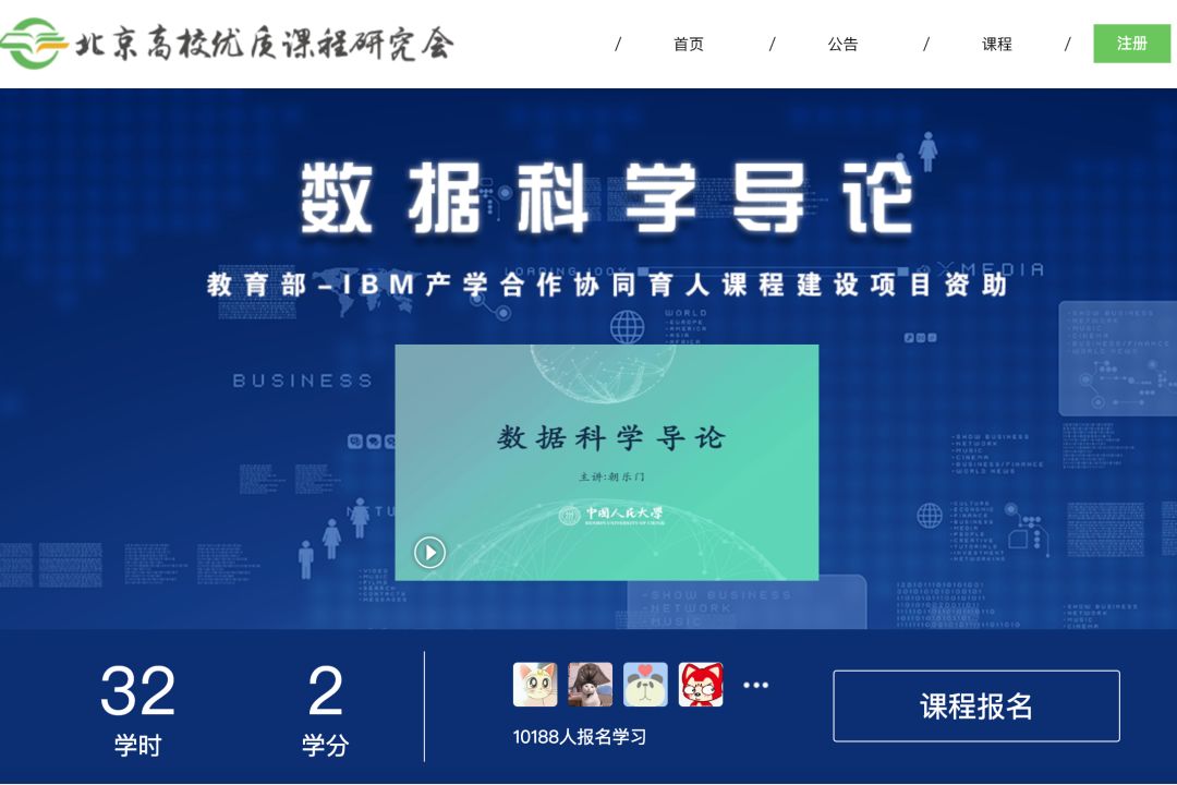 此外,由教育部-IBM产学合作协同育人项目支持的中国人民大学朝乐门老师开发的《数据科学导论》课程被评定为2018年国家精品在线开放课程。