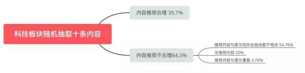 3)推荐文章类别不符(32个问题对抽样数据分析发现在主文章推荐总会有一些生活、娱乐八卦类文章推荐。占比高达60%)此问题占比40%;