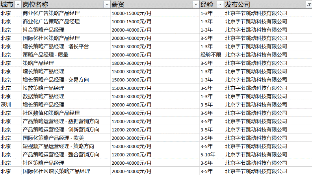 如下图所示,从我们找到的部分字节跳动策略岗位招聘来看,仅2019年3月份在北京地区招聘数量就上升到34人,同比去年增加150%。