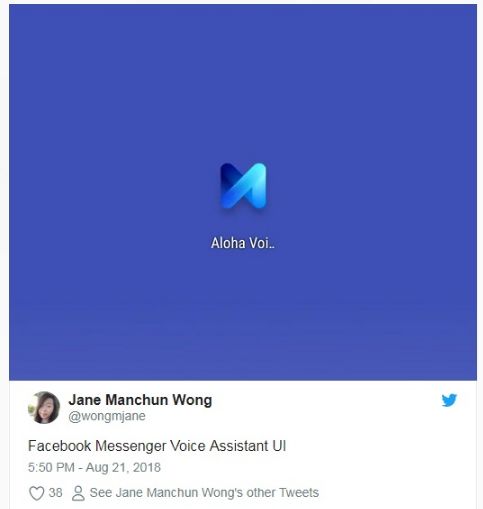 研究人员 Jane Manchun Wong,刚刚在 Facebook 主程序、及其 Messenger 消息应用中发现了代号为“Aloha”的语音助手。该界面被标记为语音测试,显示了已被 Facebook 解散的“M”虚拟助手相关的蓝色图标。