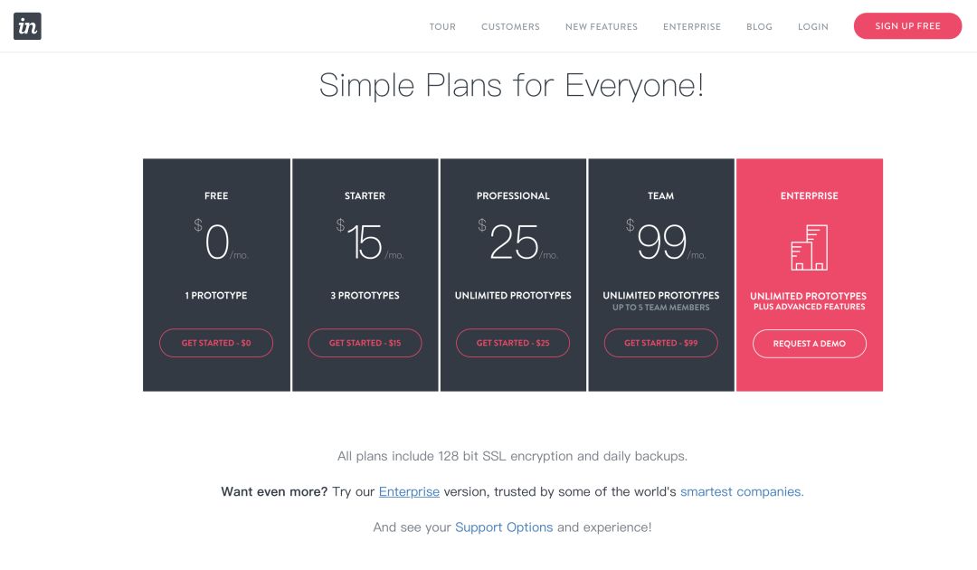 InVision 免费账户仅可以同时创建 1 个原型供协作使用,如果想要创建超过 3 个原型,就需要每月花费 25 美元订阅专业版,对还没有经济独立的学生党们来说有些难以承担。
