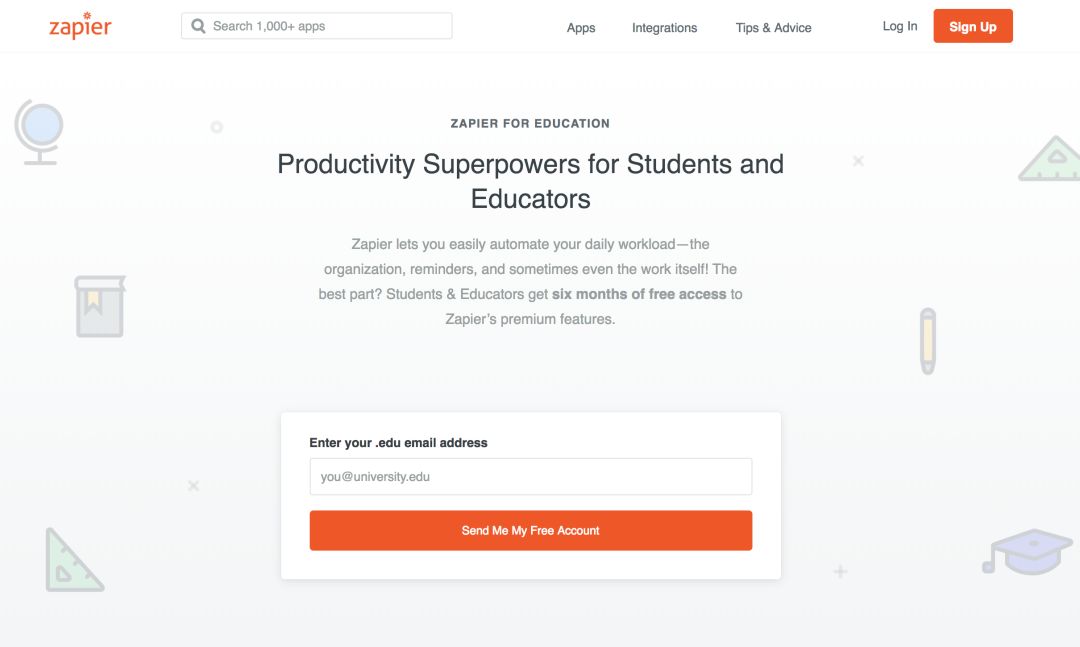 但相对的,Zapier 免费版的限制也较多,与 IFTTT 并没有太大区别,要想拥有完整体验,你需要每月花费 20 每月订阅高级版。不过,如果你有一个以 .edu 结尾的教育邮箱,就可以免费申请半年高级按授权啦。