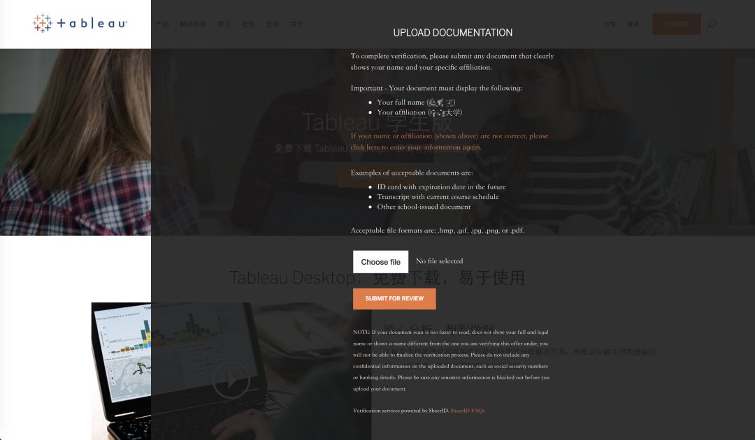 若要申请加入 Tableau 的学术研究计划,你需要访问 该页面,选择你的身份,并根据提示填写自己的姓名、学校等信息,再上传可证明身份的文档扫描件,等待审核通过后就可以免费获取一年授权了。