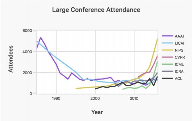 这些出席人数表明,研究重点已经从符号推理转向了机器学习和深度学习。