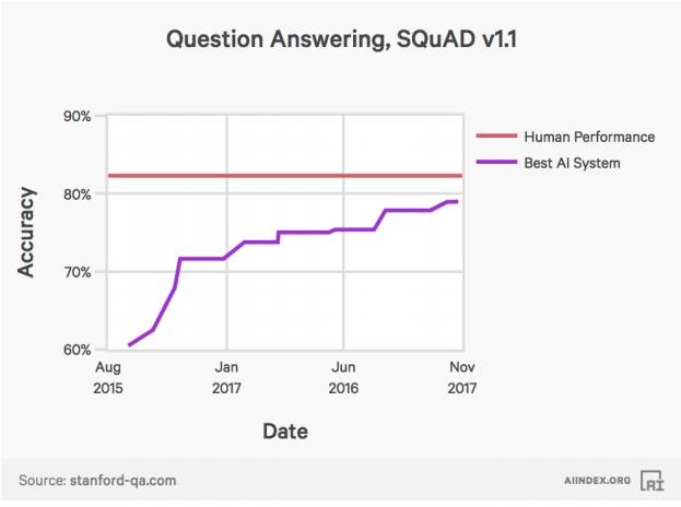 人工智能系统在从文档中找到既定问题答案任务的表现,已经越来越接近人类。