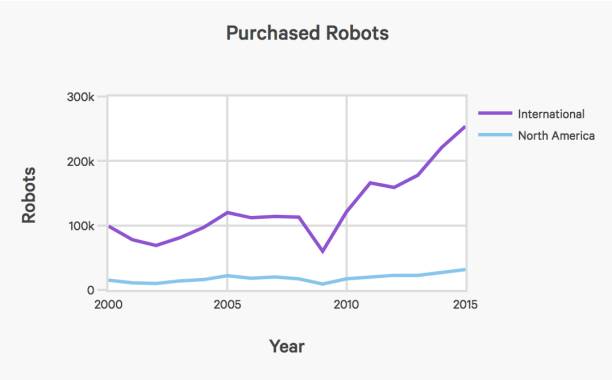 再来看自动化应用的情况,下图展示了北美和全球工业机器人的购买以及购买增幅。工业机器人的使用正在增加。