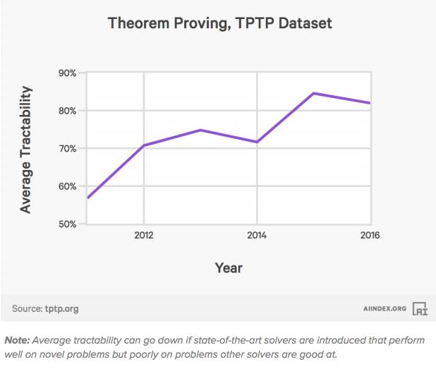 自动定理证明指的是一大组定理证明问题的平均易处理性。 “可追踪性”用来测量可以解决问题中最先进的自动定理证明器的一部分。