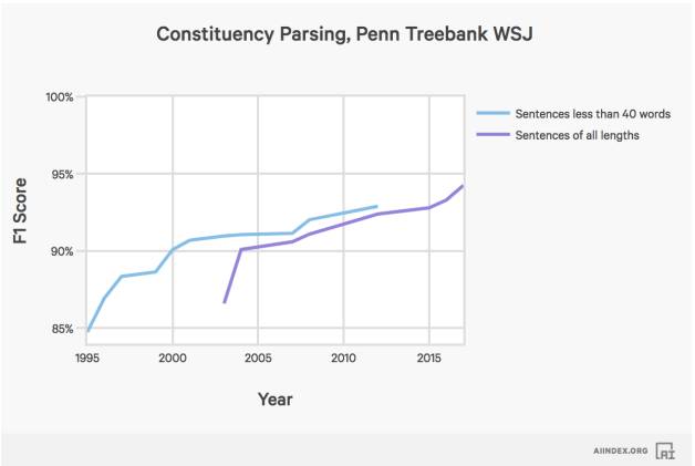 人工智能系统在确定句子句法结构上的表现。