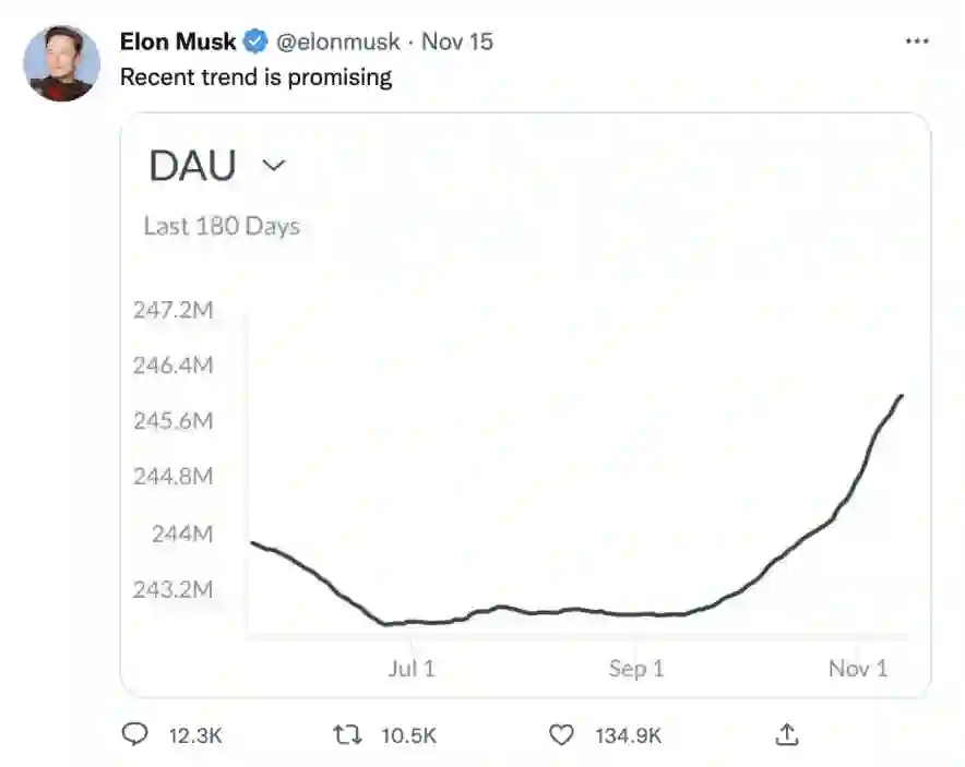 3、马斯克多次在 Twitter 中发文表示,Twitter 的使用率和日活用户近期频创创历史新高。