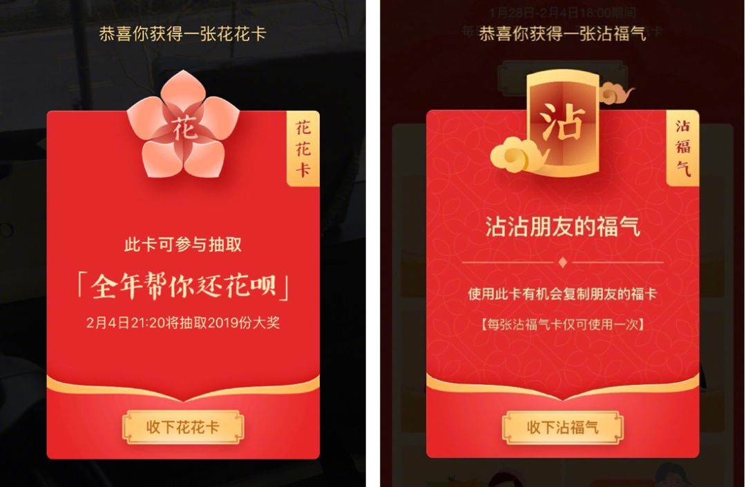 花花卡带来“全年帮还花呗”的福利,引得无数被花呗“奴役”的用户疯狂扫福,正在大家对花花卡望眼欲穿之际,支付宝推出沾沾卡。有了沾沾卡,敬业福和花花卡都可以被“沾”到,集五福的难度瞬间降低。