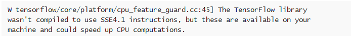 如果发生这种情况,那就说明你的系统上安装的 TensorFlow 版本对你的 CPU 而言不是最为合适的。解决此问题的一种方法是从源代码编译 TensorFlow:https://www.tensorflow.org/install/install_sources,因为这样你可以配置所有选项。但到目前来说,如果你看到这些警告,也并不是什么大不了的事情。
