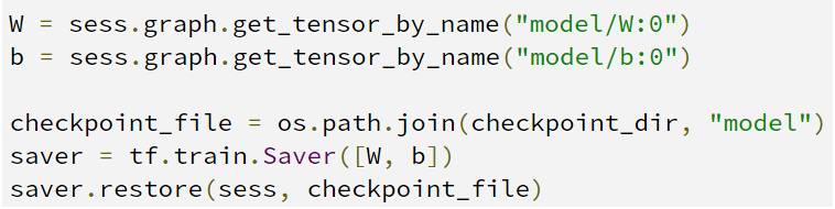 再花时间写一个 Python 脚本 export_weights.py;它与 test.py 文件很相似,用于加载计算图的定义和检查点(checkpoint)。使用如下代码: