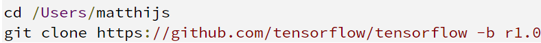 除非你的命名也是「matthijs」,否则你将需要用克隆的 TensorFlow 仓库路径来代替它。(注意 TensorFlow 出现两次,因此文件夹名称应该为 tensorflow / tensorflow / ...)