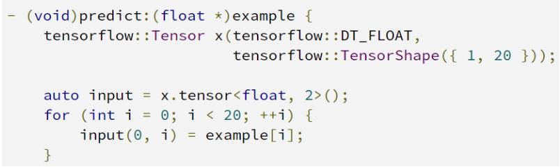 与应用程序的 TensorFlow 版本一样:对于每个样本,预测方法以 20 个浮点数输入。这是完整的方法定义:
