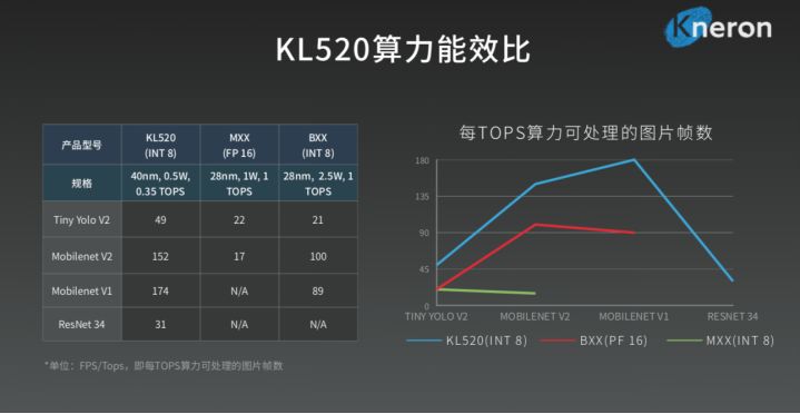 在算力能耗比方面,耐能二代KL520对比市面上较为经典的架构,能够提升3-4倍。