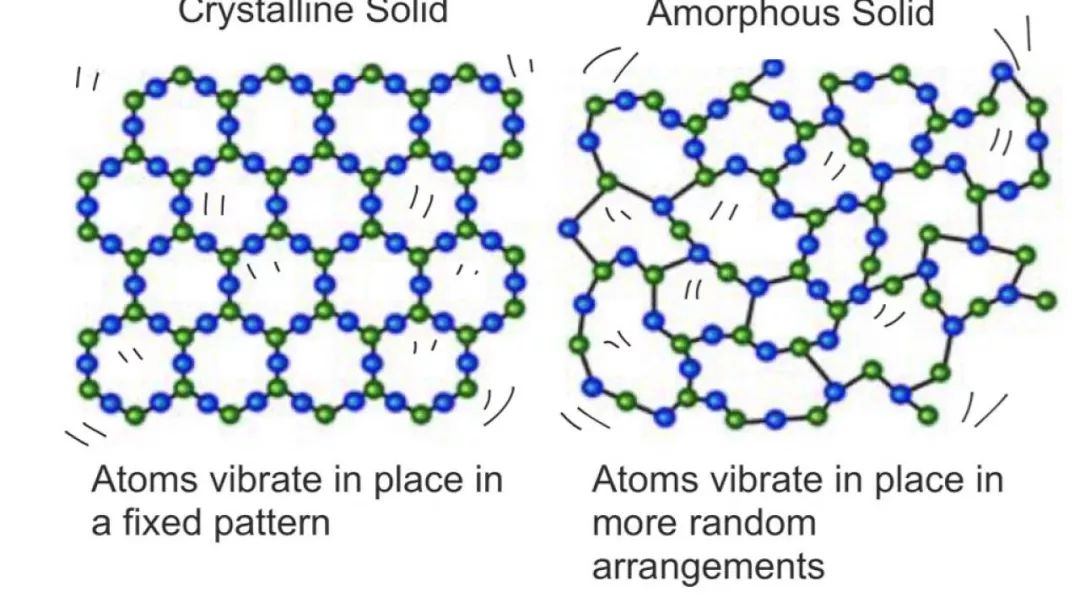 无定形指的是,由于分子流动性很低,所以无法结晶,内部的原子不像晶体那样规律排列,大家比较散漫随便排一排。