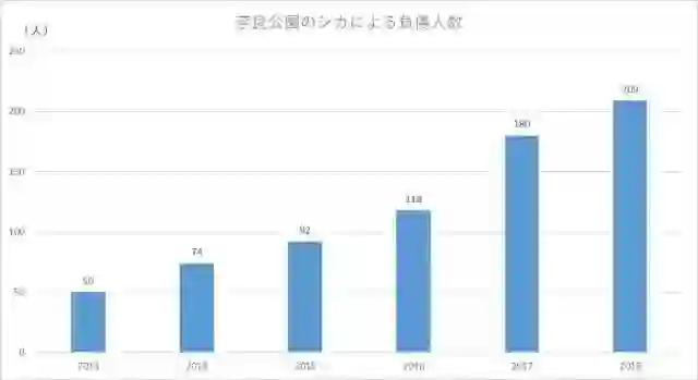 奈良县当局表示,209起访客被鹿咬伤或撞伤的事件比上个财政年的186起还要多。而且伤者中8人骨折或受重伤,过去八年总共只有10人遭野生鹿攻击后骨折。