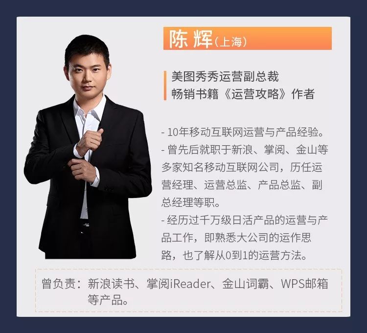 (1)美图秀秀运营副总裁,畅销书籍《运营攻略》作者 @陈辉