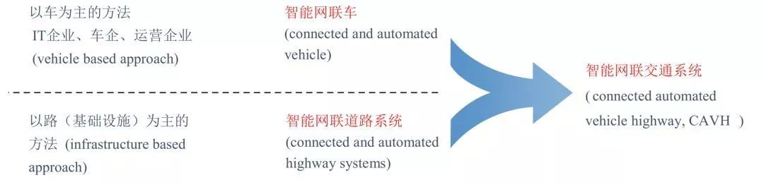 就技术发展路径而言,目前智能网联交通系统分为 2 个发展方向,即智能网联汽车和智能网联道路,如图 3 所示。IT 企业、车企和运营企业主要开展以车为主的智能网联汽车技术研究;道路交通行业以路为主进行智能网联道路系统研究。智能网联交通系统融合了智能网联汽车与智能网联道路的技术优势,协调发展,最终实现自动驾驶。