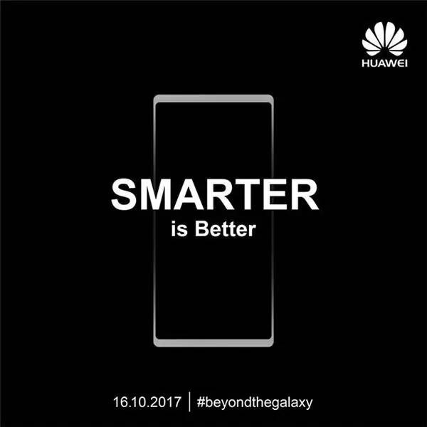 首先是华为,在 Note 8 正式发布之前就发起了#beyondthegalaxy(超越银河系)的话题,并发布了两张主题分别为“Bigger is Good”、“Smarter is Better”的海报,暗示 Mate 10 比 Note 8 更大更智能。并宣布 Mate 10 将在 10 月 16 日正式发布。