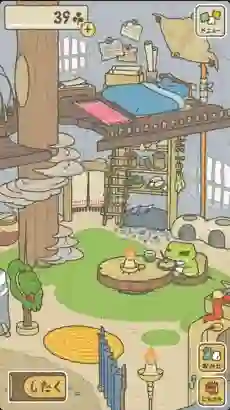 率先映入眼帘的是蛙蛙的庭院,眼前那短树桩圈起的土地里种植着的三叶草便是游戏里的“钱”了。你用它可换置蛙蛙旅行所需的食物和道具。与疯狂“掏空”你腰包的李泽言们不同,三叶草庭院里自己就会生长,连种植步骤都免了。当然,多金玩家左上角氪金按钮走好。