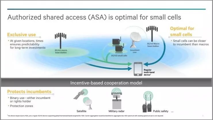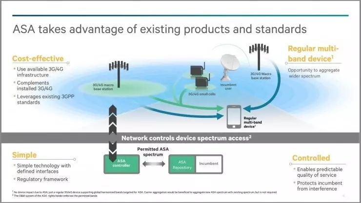 在利用免许可频谱资源的场景中,高通公司还提出了一种创新体制,名为ASA(授权共享接入技术)。