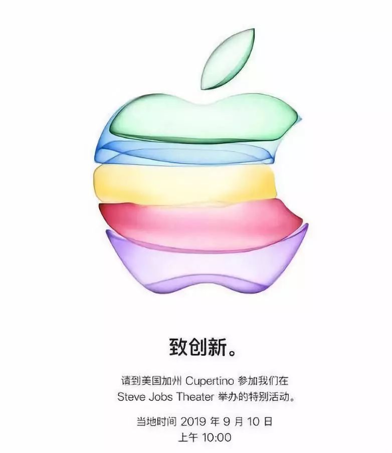 本次邀请函的主题是致创新,邀请函是一个彩虹色苹果LOGO,根据此前曝光消息,今年苹果公司可能会发布一系列新产品,包括新iPhone、MacBook Pro和Apple Watch等。