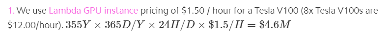 从其他云提供商(例如使用 NVIDIA A100 的云提供商)获取每个 FLOP 的成本,然后估计总成本。