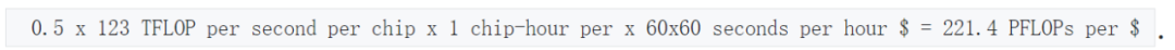 可以通过租用 TPU 实例来估计每个 flops 的成本(假设利用率为 57.8%)。