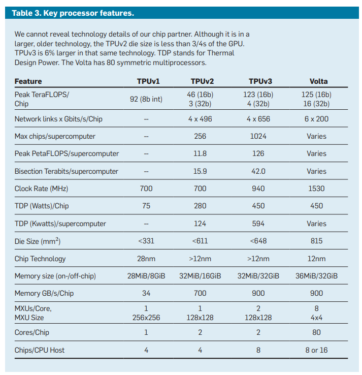 我们知道,TPUv3 芯片为 bfloat16 提供大约每秒 123 TFLOP(TFLOPS)的算力。当然,这只是表格里显示的峰值性能。