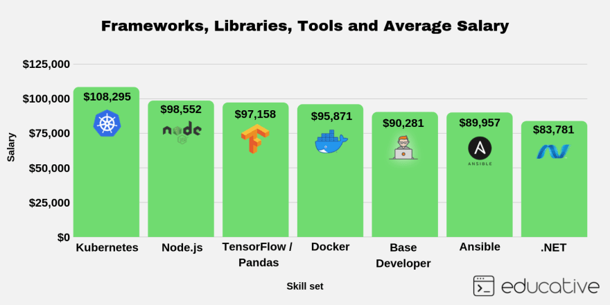 本文将谈一些最受欢迎的技术,学习这些技术会对你的薪水产生什么影响。我知道在职业发展初期,薪水并不一定是最重要的因素,但它是你付出的回报,并且反映出雇主对特定技能的重视/认可程度。通过本文,你会了解一些技术的发展趋势,对今后的职业生涯有所帮助。