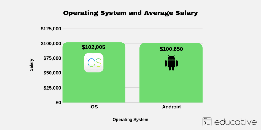你想为Android还是iOS开发应用程序?对于Android,最常用的语言是Java,而对于iOS则是Objective-C。虽然下面的细分显示iOS开发者通常会多赚一点,但Android正迅速成为开发者的首选操作系统。