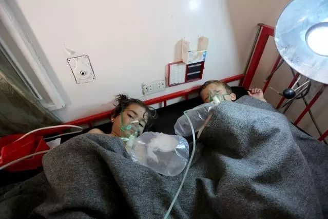 美国空袭叙利亚之后,儿童在医院接受治疗