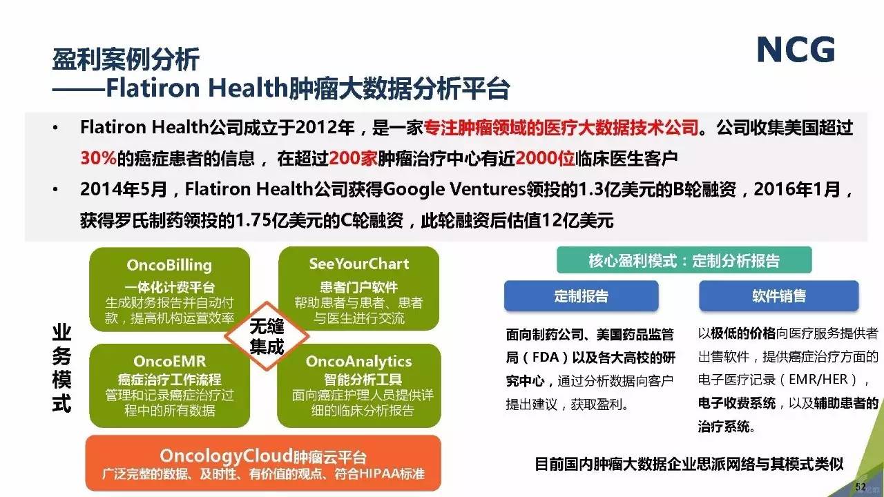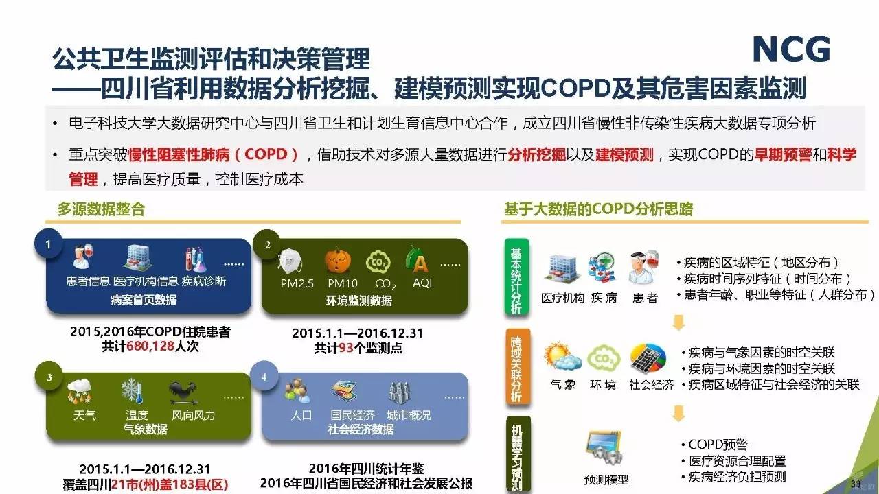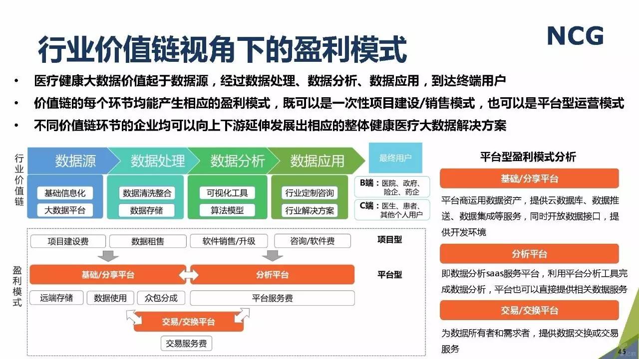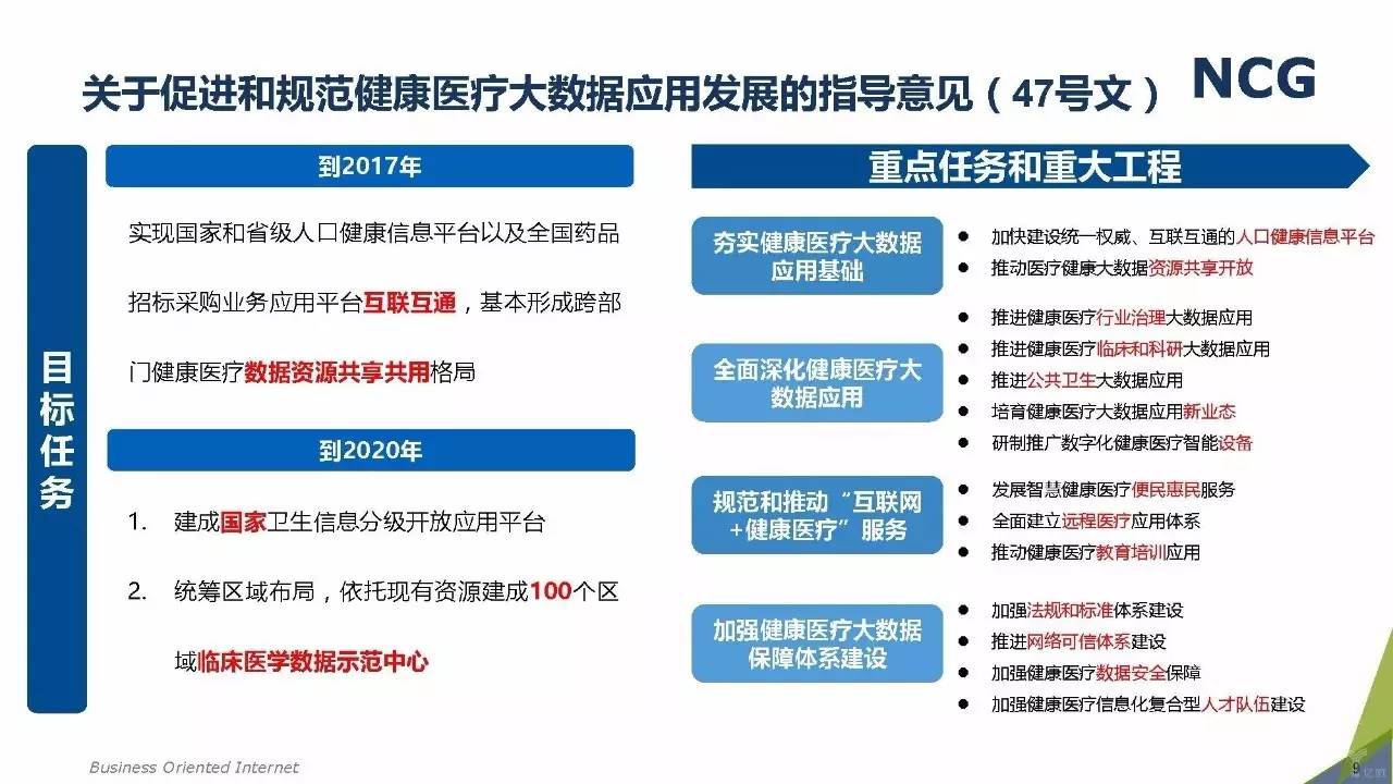 随着“健康中国2030”的不断推进,健康医疗大数据正成为国家重要的基础性战略资源。在国家卫计委牵头下,国有资本主导的三大健康医疗大数据集团正式成立,“1+7+X”的健康医疗大数据规划正在逐步成型。在此背景下,健康医疗大数据迎来快速发展,NCG在此基础上形成了对健康医疗大数据产业分析展望的行业报告。