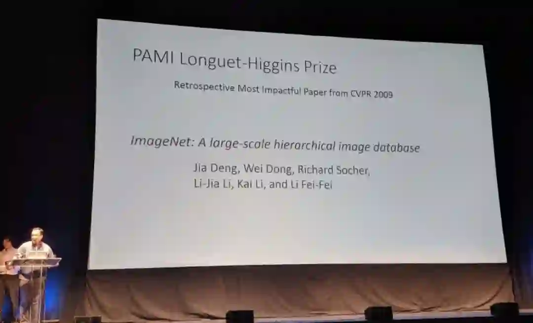 2019 年的 Longuet-Higgins 奖授予Jia Deng、Wei Dong、Richard Socher、李佳、Kai Li 和李飞飞等人的ImageNet工作:ImageNet: A Large-Scale Hierarchical Image Database。ImageNet可以说是计算机视觉领域最负盛名的工作,这篇论文发表于 2009 年CVPR,目前已有11508次引用。