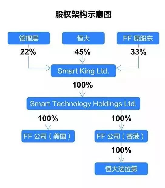 给人们留下深刻印象的,是继“白衣骑士”孙宏斌之后,许家印突然宣布与贾跃亭联手造车。今年6月25日,恒大健康以67.46亿港元收购香港时颖公司100%股份,间接获得了Smart King公司45%的股权,成为FF第一大股东。而SmartKing是去年11月,时颖与贾跃亭为代表的FF原股东以合资模式成立的新公司。