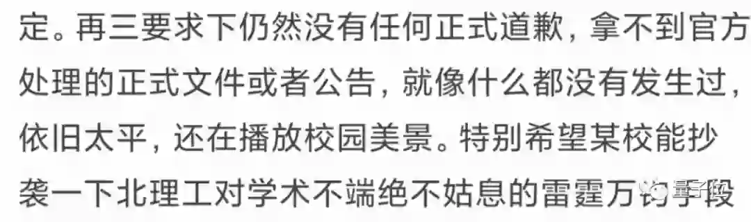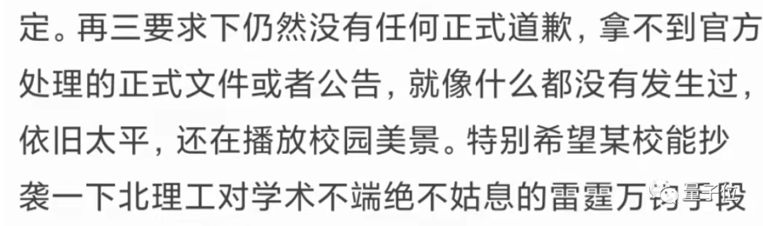 并称对方如果不能跟北理工一样直面问题,这样恶劣的抄袭还会重演。