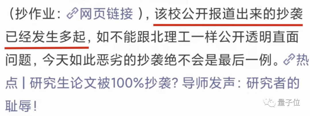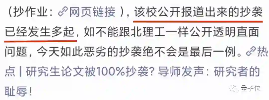 该校公开报道出来的抄袭已经发生多起,如不能跟北理工一样公开透明直面问题,今天如此恶劣的抄袭绝不会是最后一例。