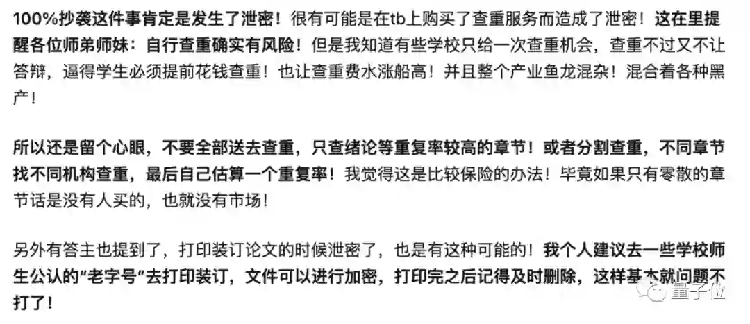 网友们分析,比较有可能的是在淘宝上自己付费查重被店家泄露,或从打印店泄露。