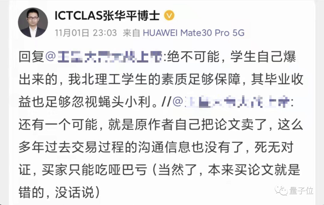 张华平老师对此做出了否认,因为被抄袭这事还是当事学生自己发现的。