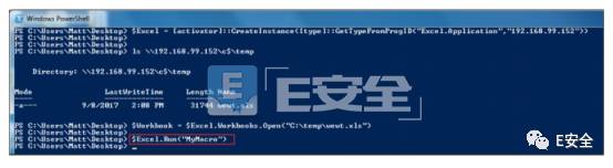 简单来说,DCOM默认管理权限允许用户远程启动后,通过Excel.Application组件接口发起远程链接,之后插入恶意的宏就可以发起攻击。