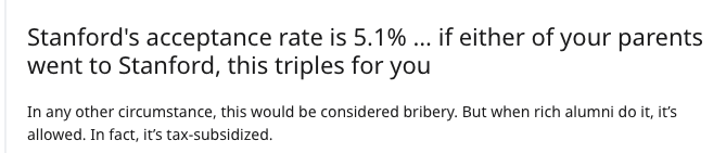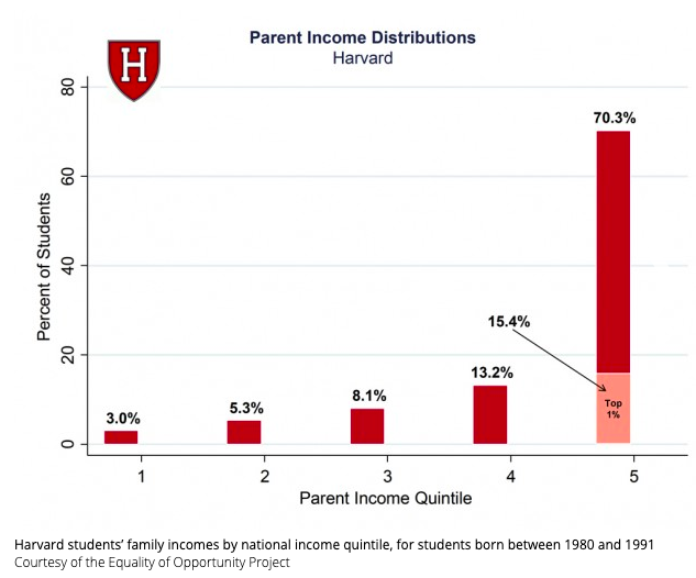 如果你的父母念过斯坦福,那么你被录取的概率就是其他人的三倍!哈佛的情况也不例外。