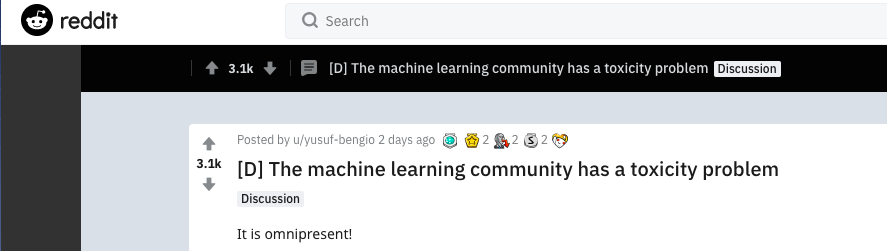 https://www.reddit.com/r/MachineLearning/comments/hiv3vf/d_the_machine_learning_community_has_a_toxicity/