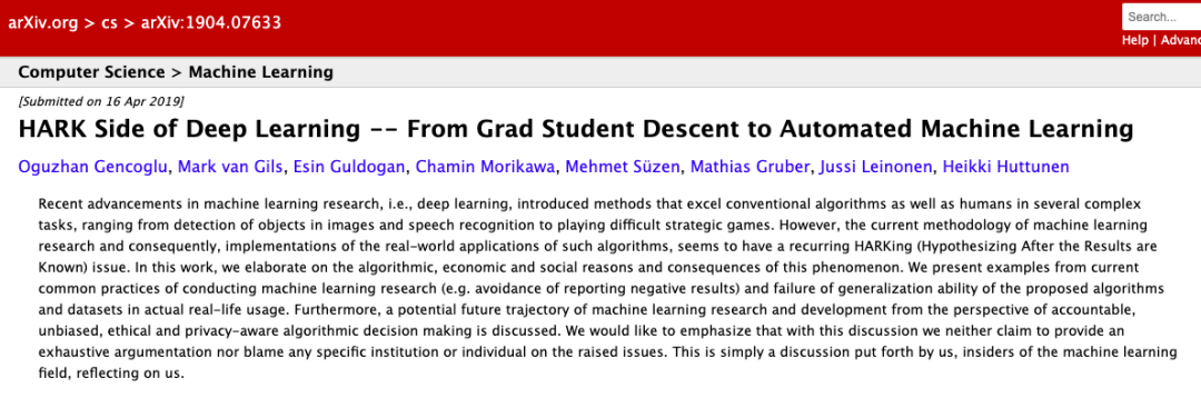 很多算法以及它们在现实世界中的应用,似乎存在一个循环 HARKing (结果已知然后还提出假设)。