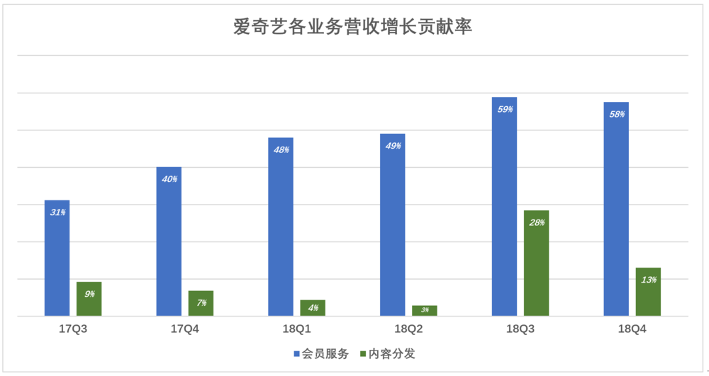 改变战略之后,会员服务和内容分发成为推动营收增长的两个引擎。前者对营收增长的贡献率接近60%,后者亦达13%~28%。
