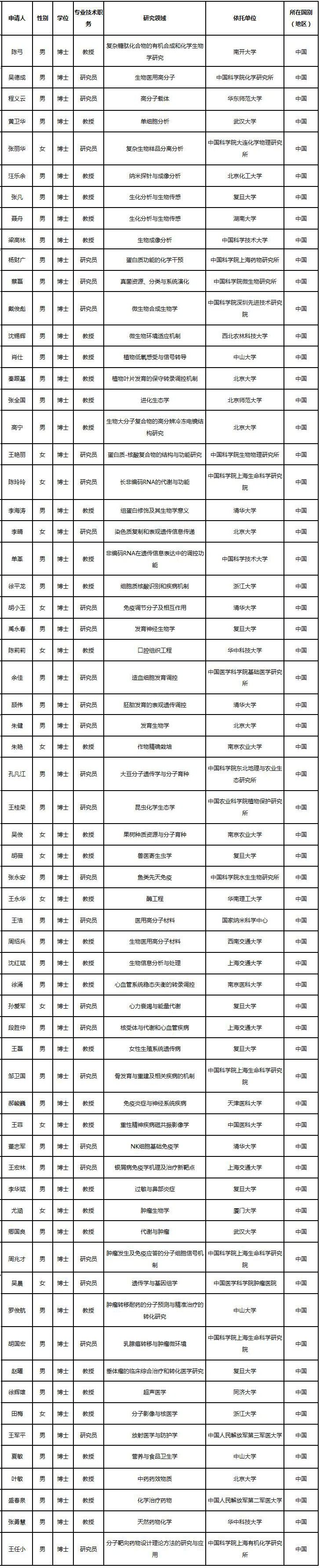 以下为医谷小编整理的2017年度国家杰出青年科学基金建议资助项目申请人之生物医学领域名单: