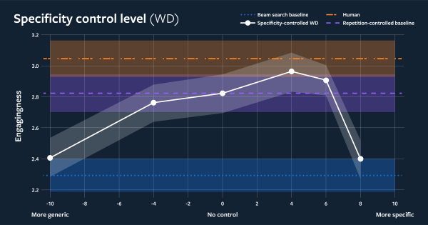 很多会话机器人容易产生“没用”的通用回复,例如:我没听懂您说的话,哈哈,哦哦等等。为改善用户体验,有很多研究人员开展会话机器人回复具体程度方面的研究,比如《What makes a good conversation? How controllable attributes affect human judgments》。下面给出一个实例: