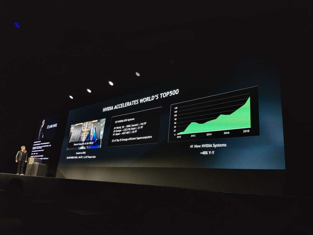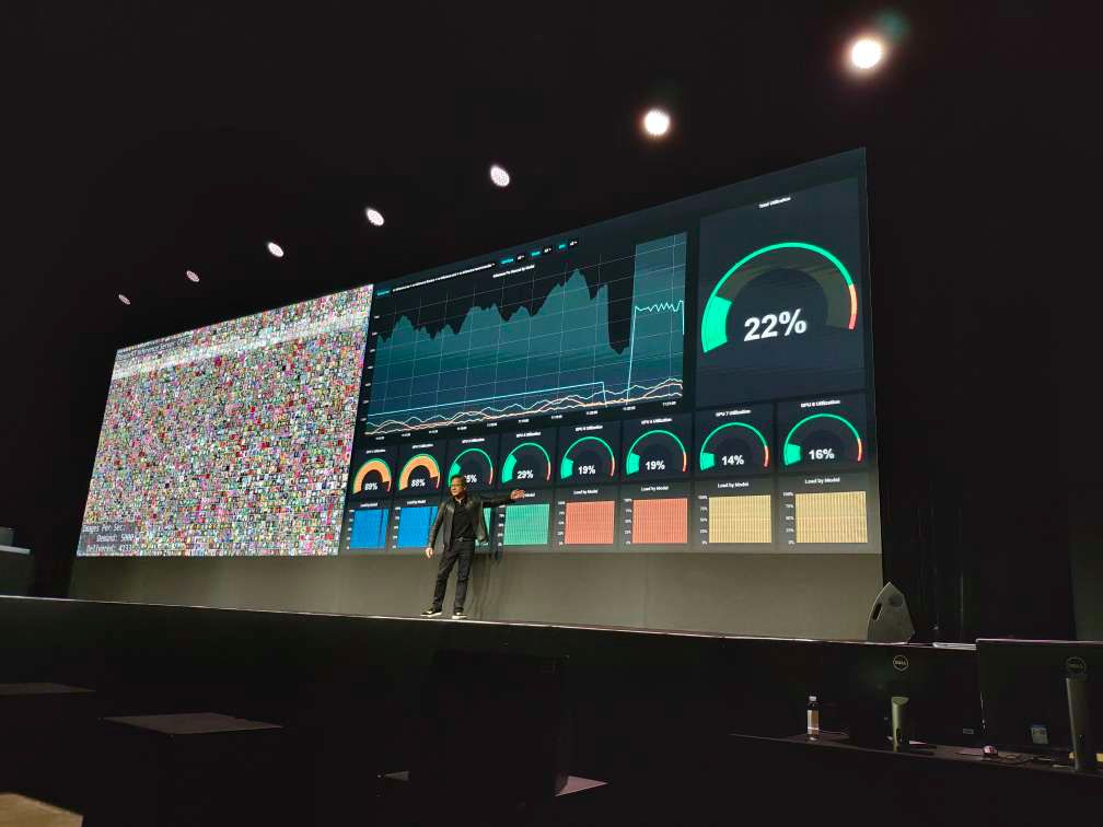 不知道其他听众是什么想法,AI 前线记者身在现场感觉到:除了巨大的信息量之外,似乎没有什么特别吸引人的地方。你或许已经看到了:今天会上几乎所有介绍到的硬件产品都是之前发布过的——当然了,2018 年英伟达发布新品的数量已经足够多,甚至有些过剩了,而黄老板也仿佛在使尽全身解数来让听众相信:英伟达目前还很好。