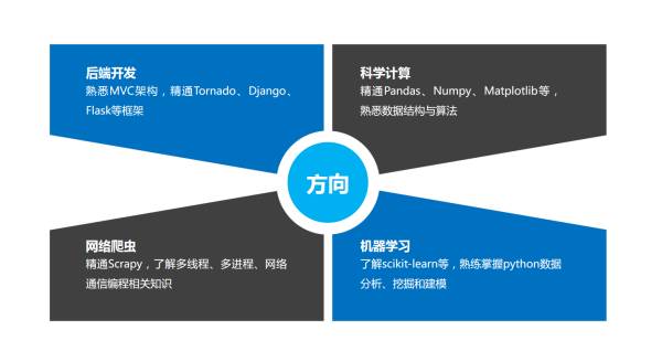 Python职业学习方向很多,大体上分为这四个